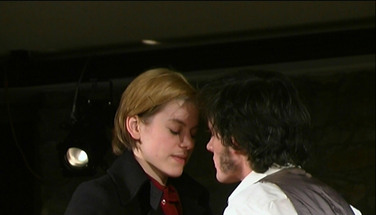 Ein Schauspieler und eine Schauspielerin auf einer Probebühne, aus dem Off die Stimme des Regisseurs. Probenarbeit. Immer wieder werden in kurzen Abständen die gleichen Sätze durchgespielt, dazwischen Unterbrechungen, Interventionen des Regisseurs, den wir nie zu Gesicht bekommen. Stattdessen erleben wir auf den Gesichtern der Schauspieler den schnellen Wechsel zwischen der Rolle und dem Darsteller.